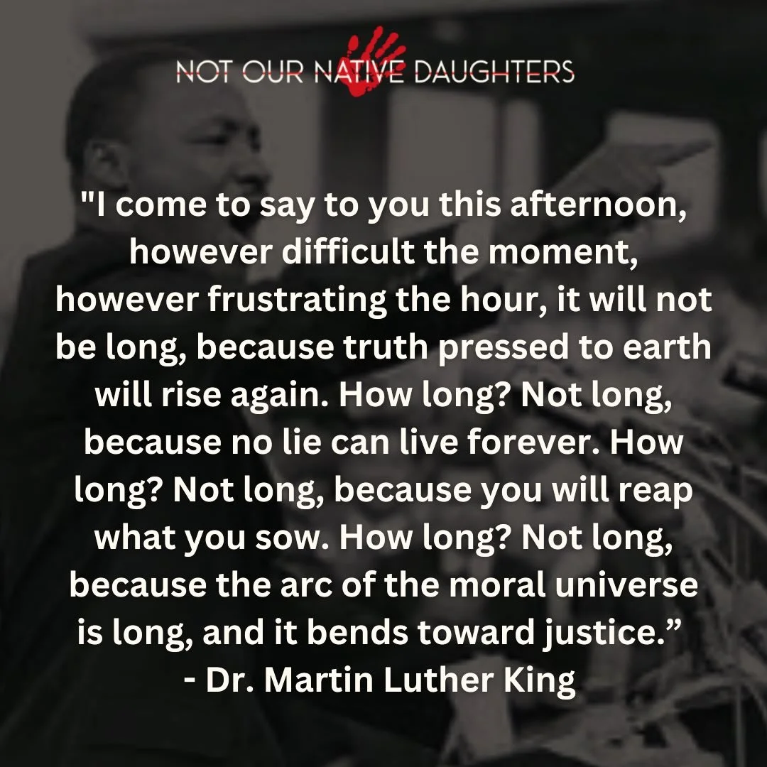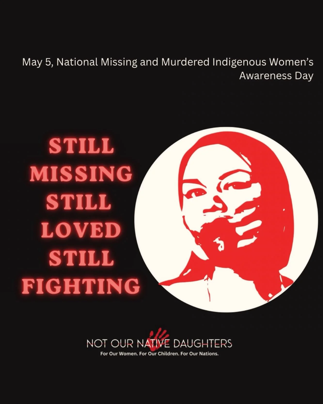 Not Our Native Daughters (NOND) was created for the education and awareness of the missing, exploited, murdered Indigenous Women & Children. May we continue to honor all victims, by continuing to stand for them! Fight with us!
