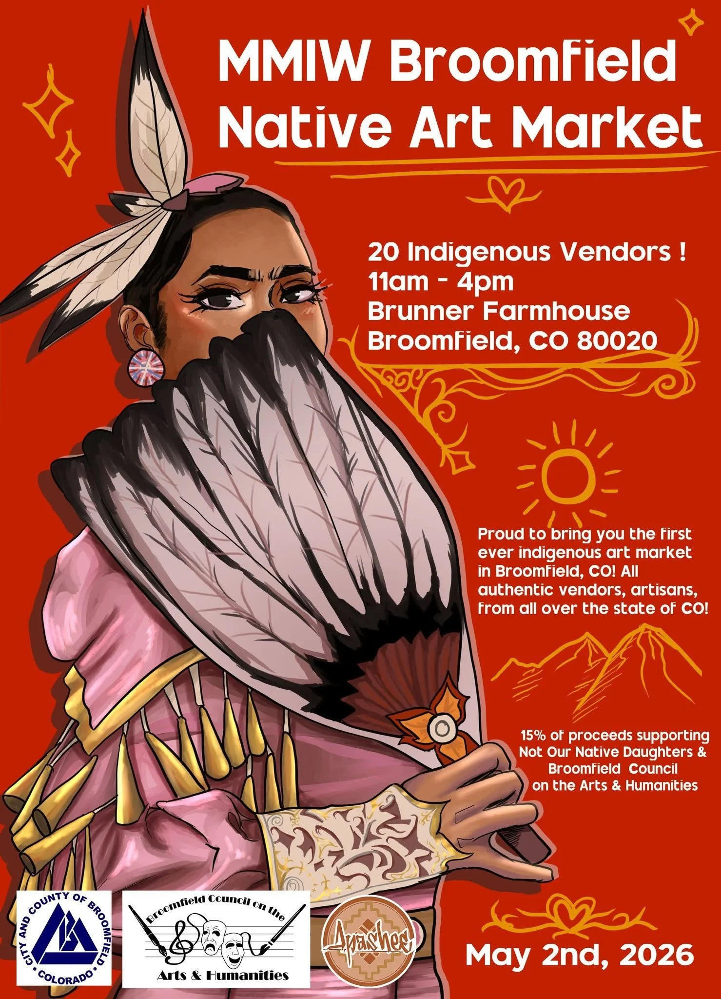 The MMIW Broomfield Native Art Market brings together Indigenous artists and community members for a powerful day of culture, creativity, and advocacy. Featuring over 20 Indigenous vendors, this event uplifts Native artists while raising awareness for Missing and Murdered Indigenous Women and Relatives. A portion of proceeds supports Not Our Native Daughters and the Broomfield Council on the Arts & Humanities, strengthening community-led healing and justice efforts.
