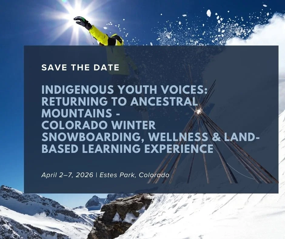 Not Our Native Daughters invites Indigenous youth to participate in our 2026 Colorado Indigenous Youth Voices Winter Program, taking place April 2–7, 2026, in the Estes Park area on ancestral Arapaho homelands. This multi-day experience integrates snowboarding, land-based learning, traditional ecological knowledge, cultural teachings, and leadership development in a supportive and trauma-informed environment.